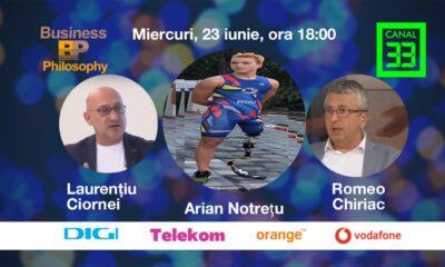 Emisiunea Business Philosophy de la Canal 33, care a fost moderată de Romeo Chiriac, l-a avut ca invitat special pe campionul mondial paralimpic, Arian Notrețu, sportiv...