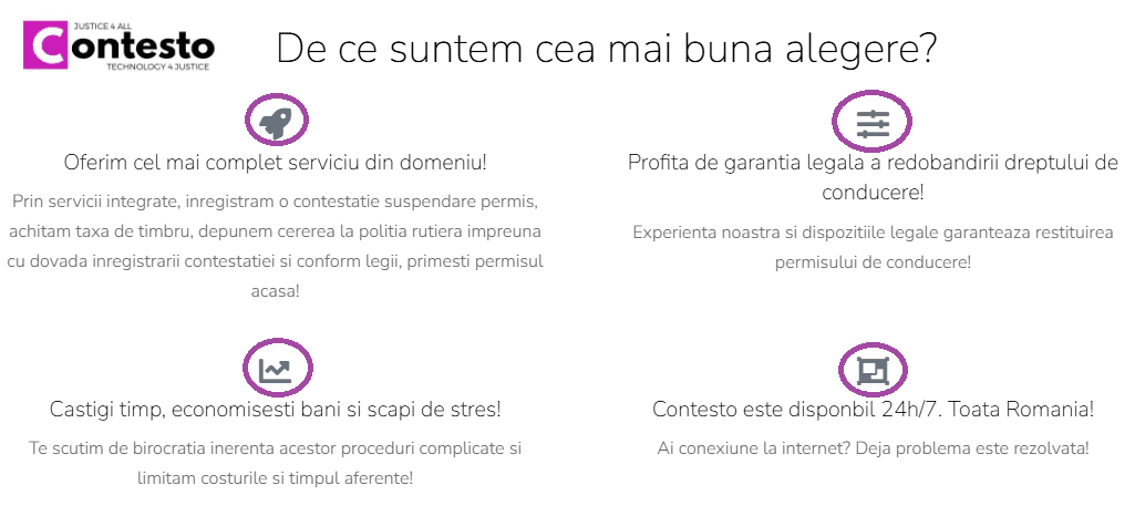 Sub motto-ul „Justice 4 All, Technology 4 Justice”, aplicaţia Contesto.ro te scapă de tot acest stres și îți garantează depunerea contestației și recuperarea permisului de conducere.