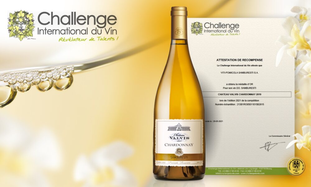 Chardonnay 2019 DOC, din gama de vinuri cu un caracter exclusivist Chateau Valvis a Domeniilor Sâmburești, este medaliat cu aur la „Challenge International du Vin” din...