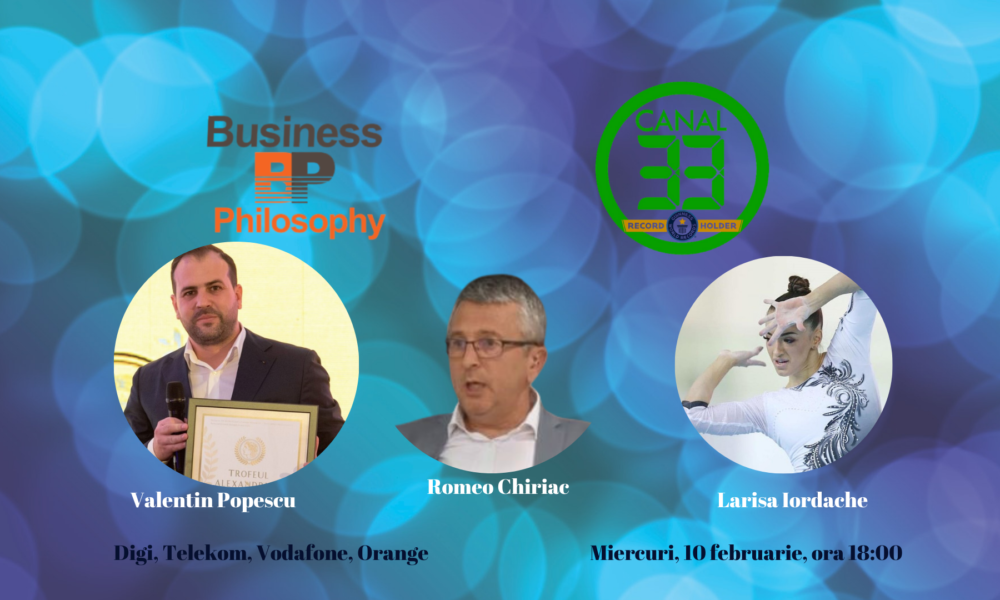 Emisiunea Business Philosophy de la Canal 33, care va avea loc miercuri, 10 februarie, de la ora 18:00, îi va avea ca invitați pe gimnasta Larisa...